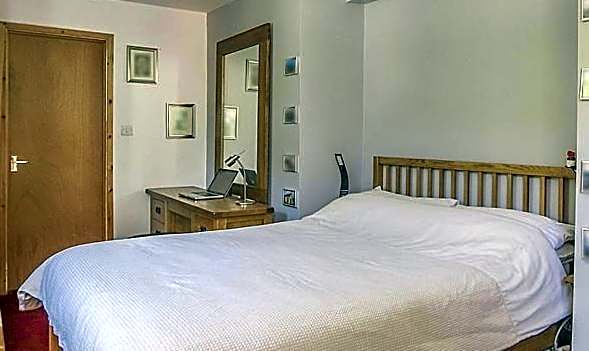 This single room has a double bed, flat-screen TV and electric kettle.